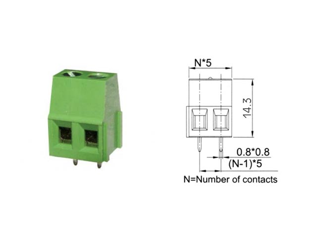 ΚΛΕΜΑ 2P Πλακέτας πράσινη, ύψος 14.3mm (kf-128-2p).