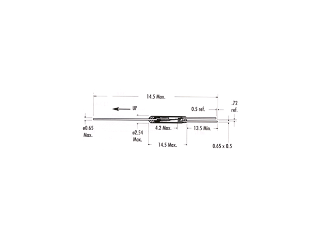 Contact Form: C Switching Capacity: 20 W/VA Max. Switching Voltage: 150 Vac/dc Max. Switching Current: 1.0 A Max. Glass Length: 0.551in (14.0mm) Diameter: 0.10in (2.54mm)