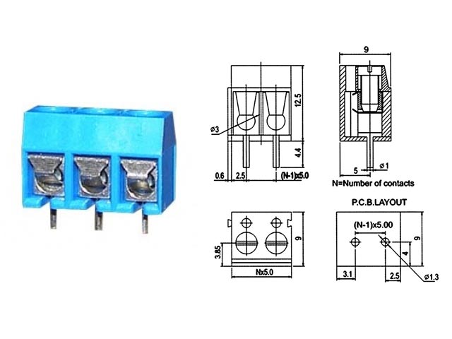 ΚΛΕΜΑ 3P Πλακέτας μπλε, ύψος 12.6mm, 300V/16A (kf-300-3p).