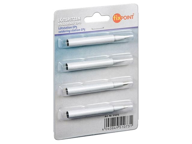 Ανταλλακτικές μύτες για τον σταθμό κόλλησης EP 5 (51098). 4 διαφορετικοί τύποι. 1 τμχ. Φ 0,8mm, 1 τμχ. Φ 0.5mm. 1 τμχ. 45° διάμετρος 3mm. 1 τμχ. 2.7mm