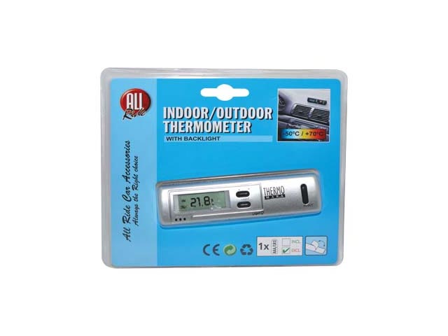 Θερμόμετρο αυτοκινήτου, εσωτερικού / εξωτερικού χώρου. Με οπίσθιο φωτισμό οθόνης. Τροφοδοσία: 1 μπαταρία ΑΑΑ (δεν συμπεριλαμβάνεται).