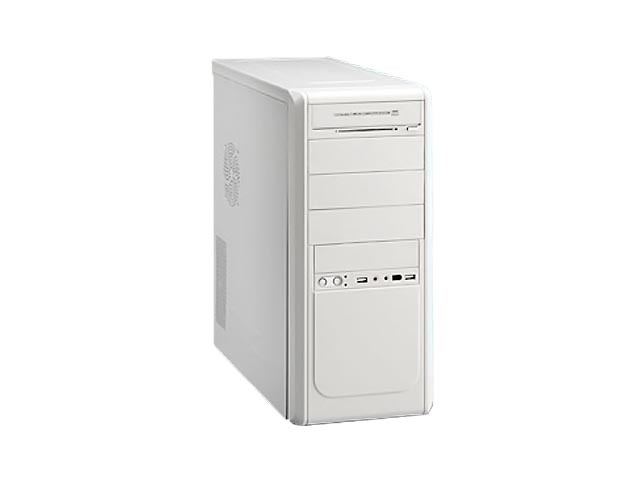 Κουτί Midi ATX σε λευκό χρώμα, με 2 θέσεις για ανεμιστήρες, χωρίς τροφοδοτικό. Διαθέτει 4 εμπρόσθιες θέσεις για συσκευές των 5,25'', 1 θέση για συσκευή των 3,5'', 2 εμπρόσθιες θύρες USB, audio in/out και μία προαιρετική θέση για firewire.