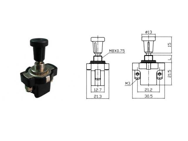 Διακόπτης λεβιέ τραβηχτος 10Α/12V DC, L: 13 2P 6A/30V DC