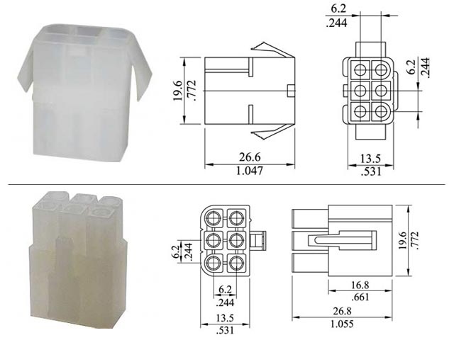 πλαστική φίσα 6 επαφών αρσενική ή θηλυκή
