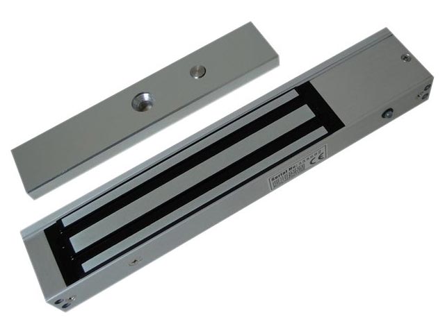 Ηλεκτρομαγνητική κλειδαριά. Δύναμη συγκράτησης 280kg, ενδεικτικό led, προστασία από ανάστροφή τάση, τροφοδοσία DC 12V/500mA. Διαστάσεις κλειδαριάς: 250x48,5x25mm, Διαστάσεις αντικρίσματος: 180x38x11mm.
