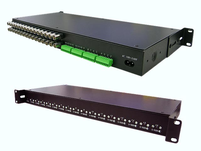 Ενεργό Patch panel 16 θέσεων για μεταφορά σε πραγματικό χρόνο έγχρωμου και ασπρόμαυρου σήματος video μέσω απλής καλωδίωσης UTP. Επιτρέπει την μετάδοση εικόνας σε αποστάσεις μέχρι και 1,5 km μέσω καλωδίου κατ. 5 ή καλύτερου. Χαρακτηριστικά: