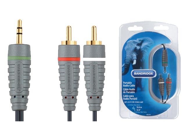 Καλώδιο ήχου Bandridge Blue line, 3.5mm male - 2x RCA male σε μήκος 10m.