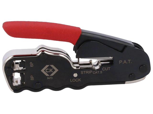 Εργαλείο συμπίεσης τηλεφωνικών και Ethernet connector απο την Carl Kammerling. Ειδικής σχεδίασης για μεγαλύτερη και καλύτερη συμπίεση. Δυνατότητα απογύμνωσης και κοπής του καλωδίου.