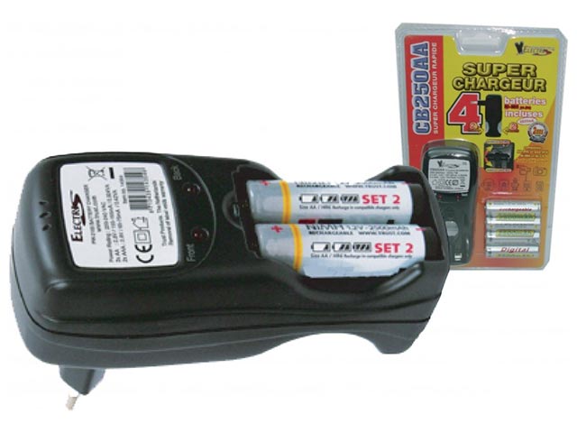 Ταχυφορτιστής 4 μπαταριών νικελίου καδμίου 2Α ή 3Α + 4 μπαταρίες ΑΑ 2500mA.