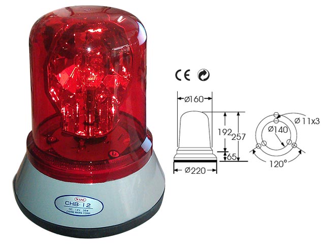 Περιστρεφόμενος φάρος 12V DC, 35W, 3.1A, flash rate 130/m