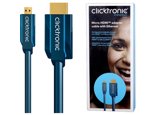 Καλώδιο Clicktronic micro HDMI αρσ. - HDMI αρσ., της σειράς "Casual", συμβατό με το νέο πρότυπο HDMI 2.0 (συμβατό επίσης με όλα τα προηγούμενα πρότυπα HDMI, δηλαδή 1.4, 1.3 κ.ο.κ.). Μήκος: 1.00m. Είδος: HC-295. Συσκευασία: Κουτί με δυνατότητα να κρεμαστεί.Για πλήρη χαρακτηριστικά, δείτε το αρχείο PDF.