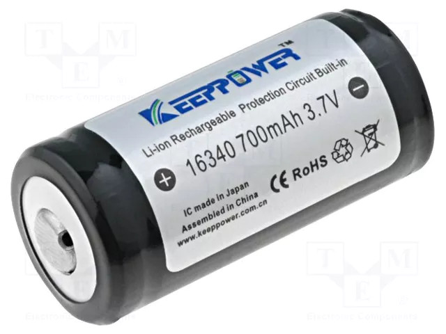 Μπαταρία Λιθίου 3,7V με χωρητικότητα 700mAh και διαστάσεις Φ16x36mm απο την Keeppower.