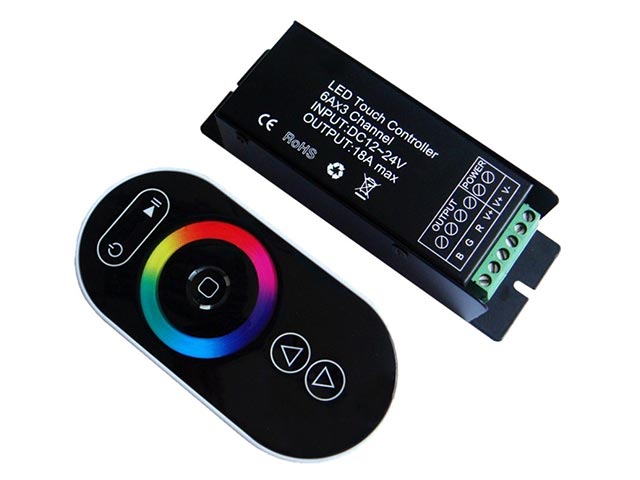 Controller για RGB LED. Εύκολη επιλογή χρώματος, 3 κανάλια x 6A, 12-24V DC, 18A max.