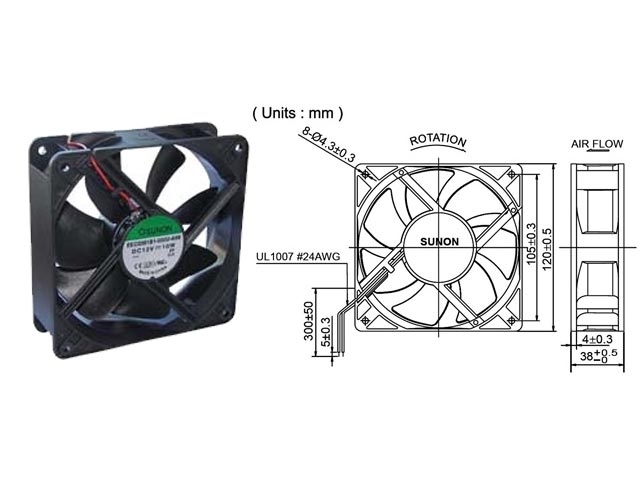 Fan 12VDC 120x120x38mm