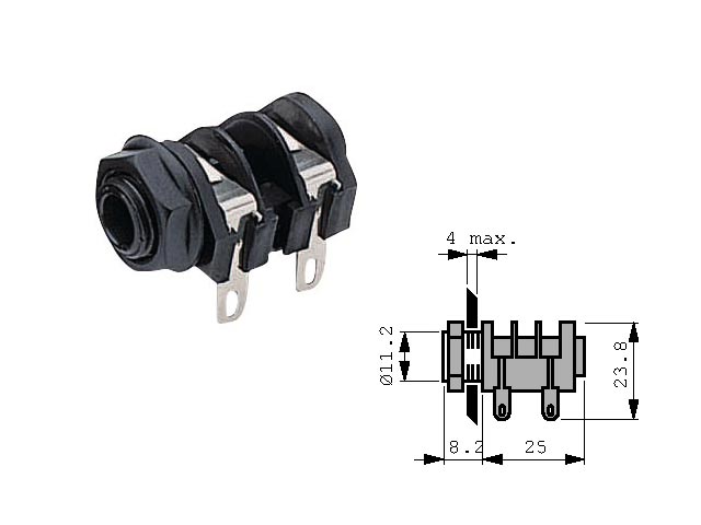 Flush-mounted jack socket 6.35mm, 2P, nikel