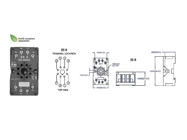 Βάση ρελέ ράγας 10A 250V 8P για DPDT
