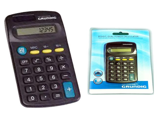 Ψηφιακή αριθμομηχανή με οθόνη 8 ψηφίων. Μεγάλα πλήκτρα. Διπλή τροφοδοσία (ηλιακός συλλέκτης - μπαταρία). Διαστάσεις 11x6,5mm. Διαστάσεις τσέπης.