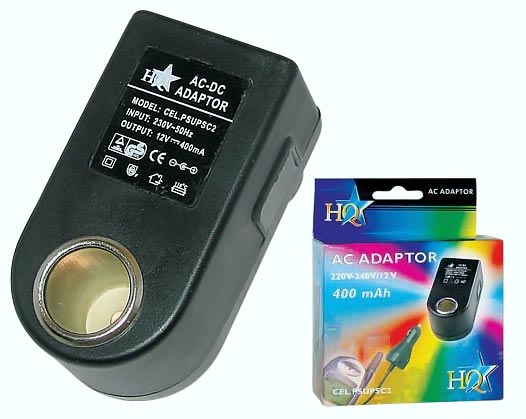 Μετατροπέας 230 VAC σε 12VDC, 400mAh, με υποδοχή αναπτήρα αυτοκινήτου. Ιδανικό για φορτιστές αυτοκινήτου.