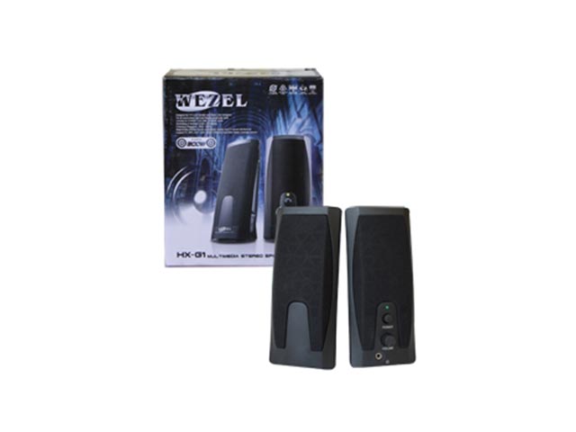 Ηχεία 2.0 Channel HX-G1 AC Wezel σε μαύρο χρώμα με διακόπτη On/Off. Εύκολη ρύθμιση έντασης ήχου και έξοδος ακουστικών. Ιδανικό για PC, Laptop, mp3 players, CD players κλπ.