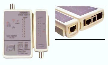 Φορητός ελεγκτής δικτυακών συνεστριμμένων και ομοαξονικών καλωδιώσεων μέσω RJ45 και BNC. Εντοπίζει λανθασμένες συνδέσεις, ανοικτά κυκλώματα, βραχυκυκλώματα.