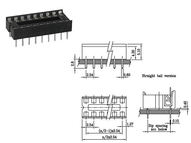 Βάση ολοκληρωμένου απλή 18P, 7.62mm