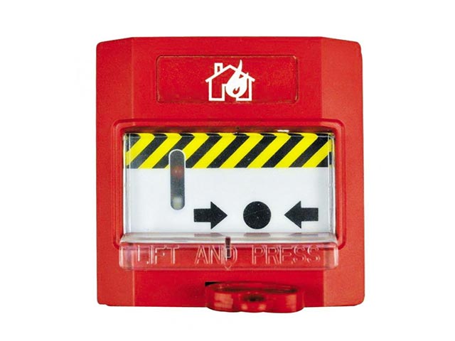 Επανατάξιμο διευθυνσιοδοτουμένο μπουτόν αναγγελίας πυρκαγιάς, με ενδείκτη LED. Διατίθεται σε κόκκινο χρώμα.