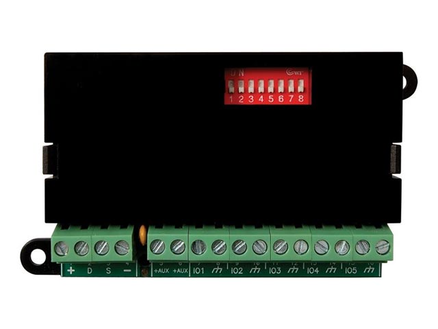 Επέκταση 5 τερματικών, η οποία συνδέεται στον πίνακα μέσω του I-BUS. Τα τερματικά μπορούν να χρησιμοποιηθούν σαν είσοδοι ή σαν έξοδοι. Όταν προγραμματισθούν σαν είσοδοι, τα τερματικά 1-4 μπορούν να χρησιμοποιηθούν για σύνδεση επαφών κραδασμού ή ρολών καθώς διαθέτουν ενσωματωμένο αναλυτή.