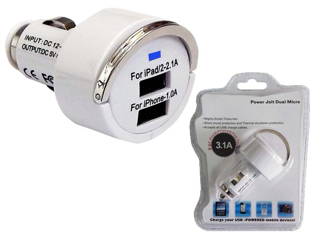 USB car charger 5V/3.1A DC, είσοδος 12V-24V DC. Θύρες εξόδου: 1x 2.1A + 1x 1A.