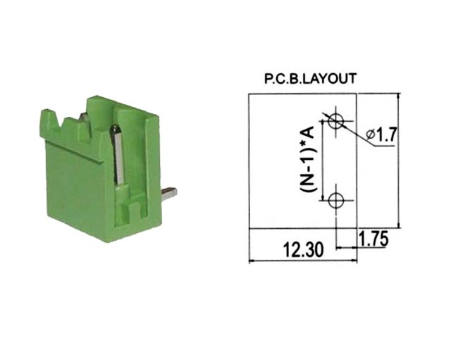 Κλέμα 2P αρσενική, γωνία τυπωμένου