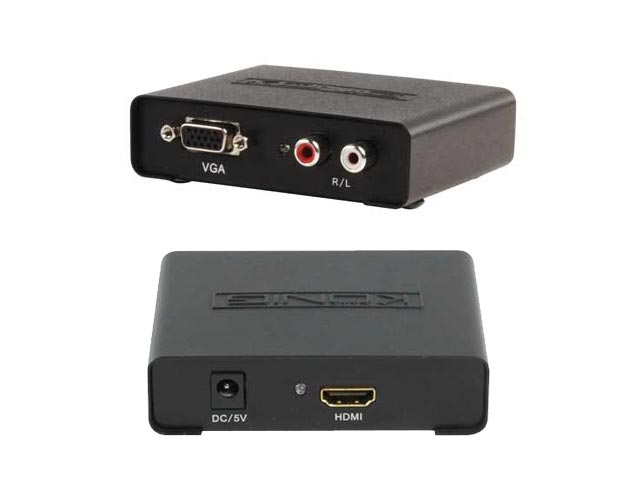 Μετατροπέας VGA σε HDMI. Αυτός ο μετατροπέας μετατρέπει σήματα VGA σε HDMI? και επιτρέπει στους χρήστες PC να εμφανίσουν την εικόνα από τον υπολογιστή στην τηλεόραση τους. Ο μετατροπέας ενσωματώνει το ηχητικό σήμα RCA R/L.