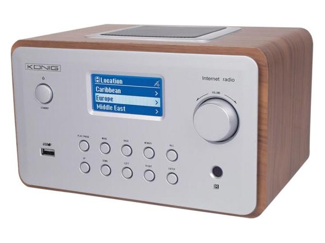 Επιλέξετε ανάμεσα από περισσότερους από 9000 ραδιοφωνικούς σταθμούς και ακούστε streaming μουσική μέσω του Η/Υ σας με αυτό το internet radio. Απλά συνδέστε το ραδιόφωνο στο ασύρματο ή ενσύρματο δίκτυο σας και ακούστε την αγαπημένη σας μουσική με πολύ καλή ποιότητα ήχου. Το ραδιόφωνο διαθέτει πολύ όμορφο σχεδιασμό ενώ διαθέτει μεγάλη, ευανάγνωστη οθόνη, συμβατή με ID3 tag. Η θύρα USB σας επιτρέπει να ακούσετε μουσική που έχετε αποθηκευμένη σε USB stick. Συμπεριλαμβάνεται τηλεχειριστήριο. Καφέ χρώματος.