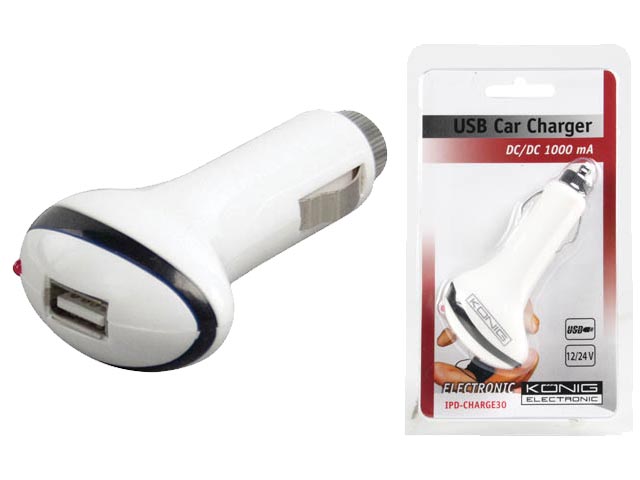 Universal φορτιστής αυτοκινήτου για iPod?, με μια θύρα USB, 1000mAh. Ιδανικό για φόρτιση συσκευών USB όπως MP3 players, iPods? ή PDAs στο αυτοκίνητο. Διαθέτει και λειτουργίες προστασίας όπως από βραχυκύκλωμα ή ξαφνική διακοπή παροχής.