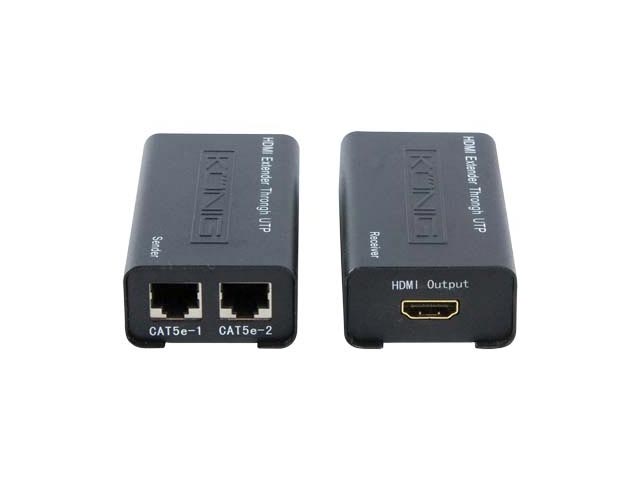 HDMI extender μέσω καλωδίου UTP. Επεκτείνετε το σήμα HDMI έως και 60μ, μέσω δύο καλωδίων UTP cat 5e. Συνδέστε τον πομπό στην πηγή με ένα καλώδιο HDMI, και τον δέκτη σε μία τηλεόραση. Μεταξύ των δύο μπορείτε να συνδέστε δύο καλώδια UTP cat 5e μέχρι και 60μ.