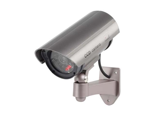 Ομοίωμα κάμερας Security για εξωτερικό χώρο με ομοίωμα IR LED. Επαγγελματικός σχεδιασμός για να δίνει την εντύπωση ασφάλειας. Με ενσωματωμένο LED που αναβοσβήνει. Συμπεριλαμβάνεται βάση στήριξης. Μήκος: 17cm. Διάμετρος: 8cm. Μήκος βάσης: 13cm.