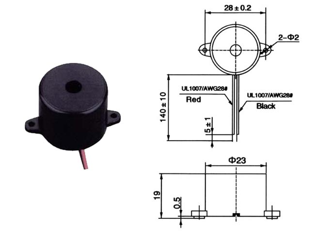 Buzzer με καλώδιο, ένταση 85/90dB, τροφοδοσία 9V DC.
