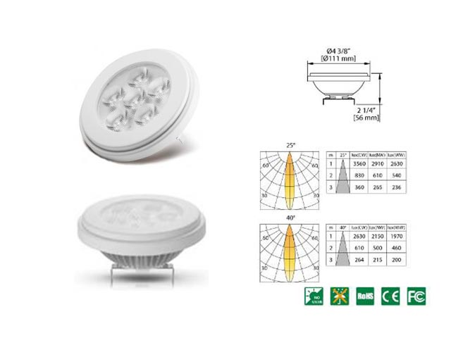 Σποτ 10W, 12V φυσικό φως, ασημί LED 75W απόδοση. AC/DC 12V. GU53 βάση. Γωνία πεδίου: 40°. CCT(Typ.): 3800-4500K.
