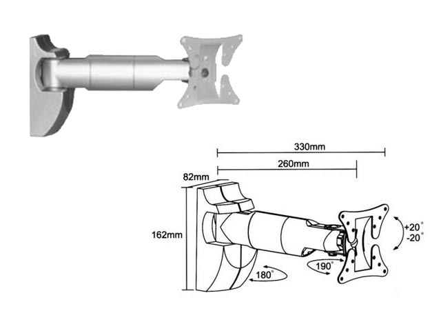 Βάση σπαστή 13"~23? (33.02x58.42cm). Kλίση: ±20°. Περιστροφή: 180°. Βάρος: max 30kg. Vesa: 50/75/100mm.