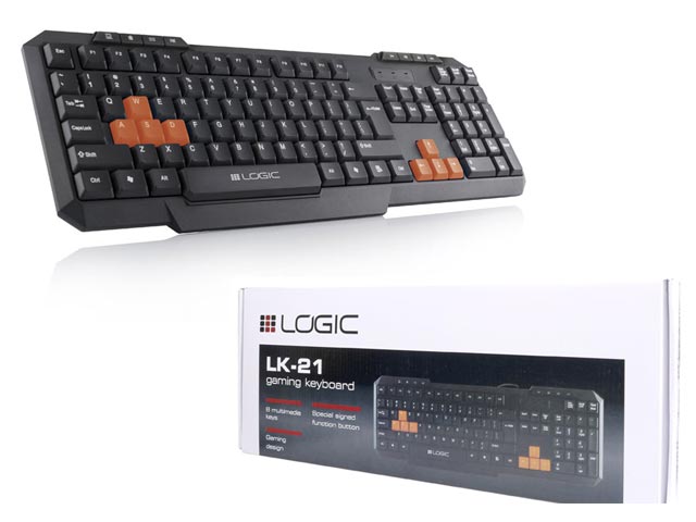 Eνσύρματο USB gaming πληκτρολόγιο LK-21. Το πληκτρολόγιο LK-21 πληροί τις προσδοκίες ακόμα και των πιο απαιτητικών χρηστών. Είναι εύκολο να συνδεθεί μέσω USB με τον υπολογιστή σας και στη συνέχεια να σερφάρετε στο διαδίκτυο ή να απολαύσετε τα αγαπημένα σας παιχνίδια. Ιδιαίτερη άνεση, ελκυστικός σχεδιασμός, οκτώ πλήκτρα πολυμέσων, οκτώ πλήκτρα gaming σε πορτοκαλί χρώμα και ενσωματωμένο αριθμητικό πληκτρολόγιο για την καλύτερη δυνατή χρήση.