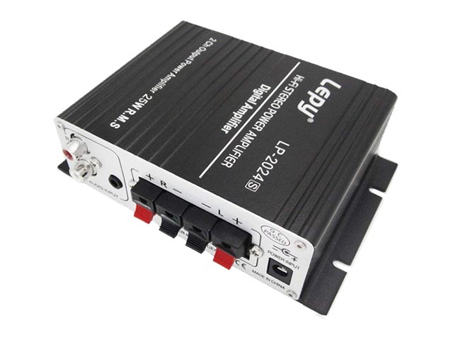 Μικρού μεγέθους ψηφιακός ενισχυτής STEREO Class T, 2x 25W rms. Κατάλληλος ενισχυτής για χρήση σε γραφεία, μικρούς επαγγελματικούς χώρους, στο σπίτι ή στο αυτοκίνητο. Λόγω μικρού μεγέθους είναι ιδιαίτερα βολικός στην τοποθέτησή του σε σημεία που δεν υπάρχει πολύς διαθέσιμος χώρος. Έχει την δυνατότητα να βιδωθεί σε οποιοδήποτε σημείο είτε οριζόντια είτε κάθετα.Είναι κατάλληλος για σύνδεση με οποιαδήποτε πηγή ήχου (CD ή ραδιόφωνο ή DVD ή με υπολογιστή, laptop, κλπ.).