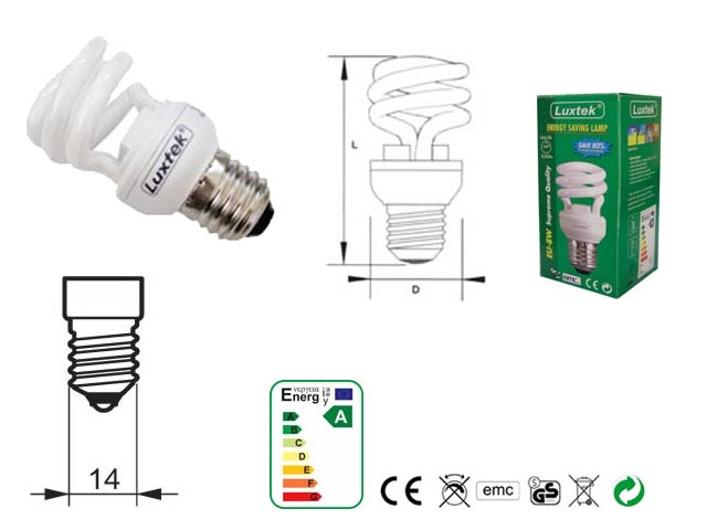 Λαμπα οικονομίας spiral 12W/E14/CW, mini half