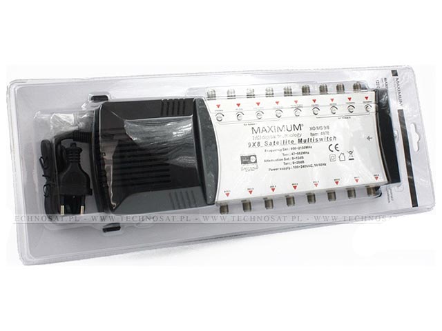 Πολυδιακόπτης με 9 εισόδους SAT για δύο μετατροπείς Quattro + 1 είσοδο από επίγεια τηλεοπτική κεραία. Διαθέτει ενσωματωμένο τροφοδοτικό. Ο πολυδιακόπτης 9/8 χωρίζει το σήμα ανεξάρτητα από 2 δορυφόρους και τις κεραίες σε 8 δέκτες. Για να διαχωρίσετε το δορυφορικό και το επίγειο σήμα, πρέπει να χρησιμοποιηθούν πρίζες TV / Sat.