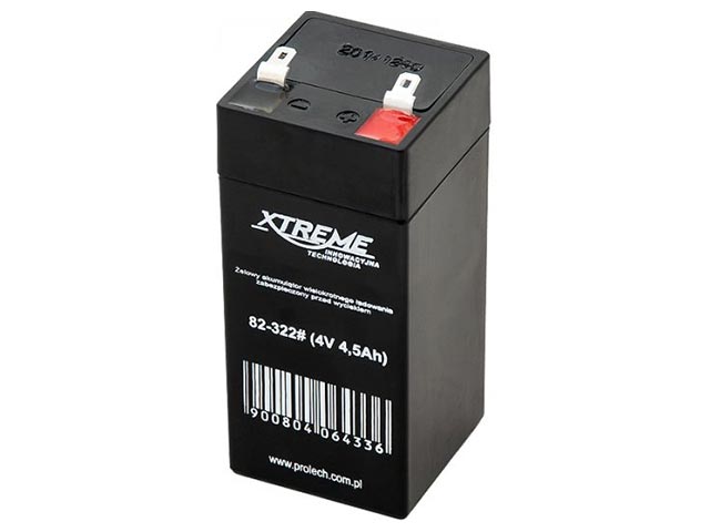 Μπαταρία μολύβδου 4V / 4.5Ah. Διαστάσεις: 94mm (Μ) x 46mm (Π) x 52mm (Υ).