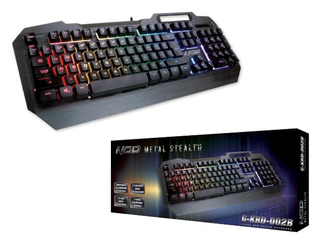Ενσύρματο Gaming πληκτρολόγιο, με RGB LED Backlight φωτισμό 7 χρωμάτων, επιφάνεια από αλουμίνιο σε μαύρο χρώμα και ενσωματωμένη βάση στήριξης για το Smart Phone σας.Το ενσύρματο Gaming πληκτρολόγιο "Metal Stealth" έχει εντυπωσιακή εμφάνιση με επιφάνεια από βουρτσισμένο αλουμίνιο σε μαύρο χρώμα και ταυτόχρονα εργονομική σχεδίαση, καθώς και βάση στήριξης για το smartphone σας. Διαθέτει οπίσθιο RGB LED φωτισμό 7 χρωμάτων και Doubleshot Keycaps, ενώ μπορείτε να επιλέξετε ένα από τα 9 μοτίβα φωτισμού και να ρυθμίσετε την ταχύτητα εναλλαγής τους, την φωτεινότητα, τον συνδυασμό χρωμάτων, ακόμα και την περιοχή φωτισμού, ανάλογα με τις απαιτήσεις του κάθε Session.Επιπλέον, για υψηλές Gaming επιδόσεις σου δίνει την δυνατότητα για 19-key Rollover, και το μαύρο Braided καλώδιο USB, μήκους 1.5 m, συμβάλλει σε μια Stealthy εμφάνιση και μέγιστη αντοχή.