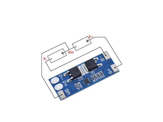 BMS πλακέτα προστασίας φόρτισης εκφόρτισης για μπαταρίες 18650. Η πλακέτα BMS παρέχει προστασία φόρτισης/εκφόρτισης για στοιχεία λιθίου σε διαμόρφωση 2S, συνολική τάση 7,4V (φορτισμένη). Ιδανική για συστοιχίες μπαταριών που αποτελούνται από 2 στοιχεία τύπου 18650.