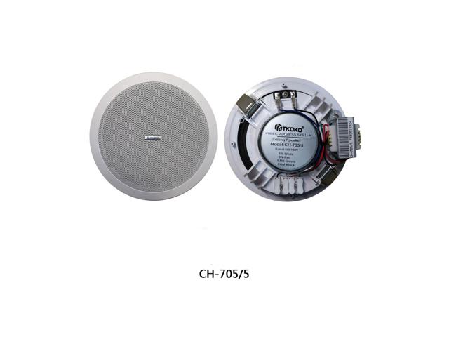 Ηχείο οροφής 5" λευκό μεταλλικό 6W,90dB,με μετασχηματιστή 100V.Διάμετρος τρύπας Φ16,5cm με 18,5 cm συνολικό και Βάθος 8cm.Απόκριση συχνότητας 100Ηz-15KHz.