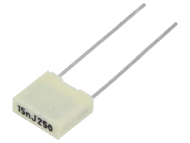 Πολυεστερικός πυκνωτής 15nF, 160V AC, 250V DC, Pitch 5mm, ±5%.
