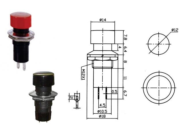 Μπουτόν στρογγυλό πλαστικό 2P 3A push on κόκκινο ή μαύρο