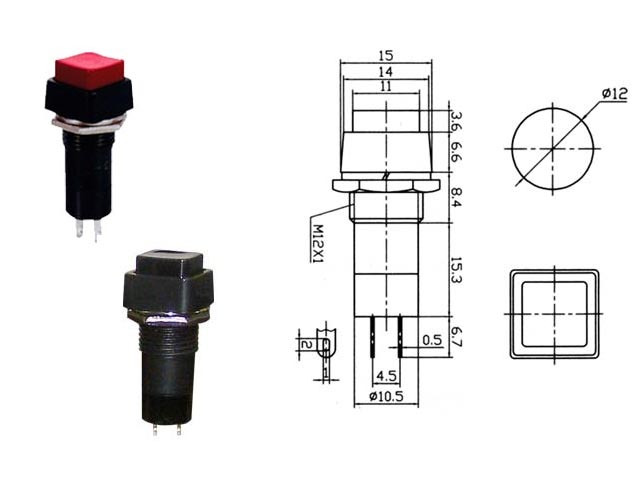 Διακόπτης τύπου μπουτόν τετράγωνος 2p 1.5A on-off, μαύρο ή κοκκινο