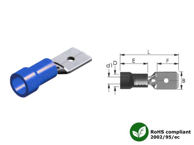 Ακροδέκτης συρταρωτός αρσενικός μπλε Β=2.8 F=7.8 L=20.5. Ελάχιστη ποσότητα παραγγελίας 100τμχ.
