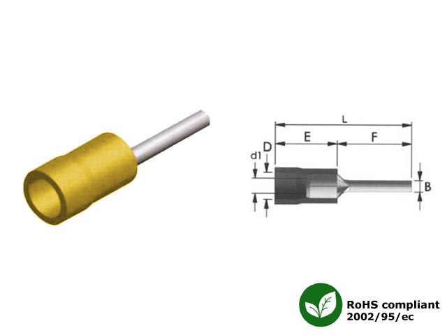 Ακροδέκτης μύτη κίτρινος Β=2.8 F=14.0 L=26.5 Ε=12.5
